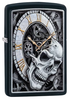 Time is ticking. This Black Matte lighter features a grim design reminding us that the clock will never stop ticking. Zippo's in-house artists continue to produce spectacular original artwork to adorn the windproof lighter. This hand-drawn design was originally created with pen and ink, then carefully digitally-transferred to preserve the intricate layers of detail and shading to be reproduced with Zippo's colour imaging process. Comes packaged in a gift box. For optimal performance, fill with Zippo lighter fluid.